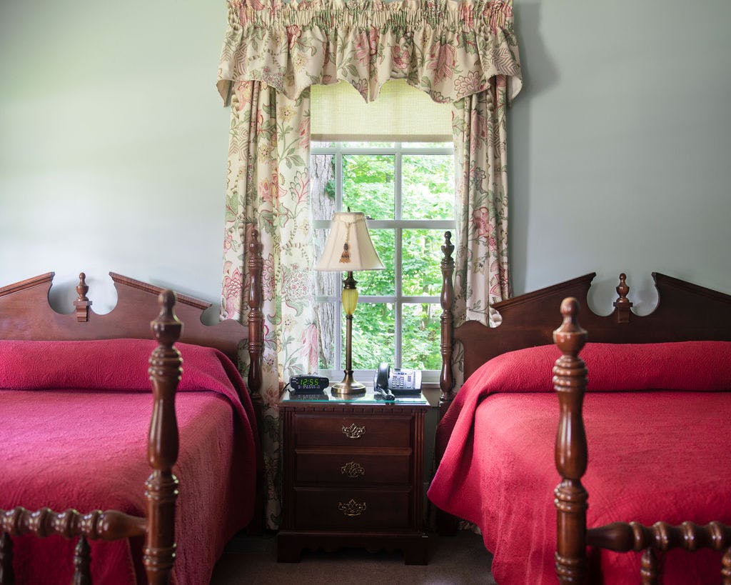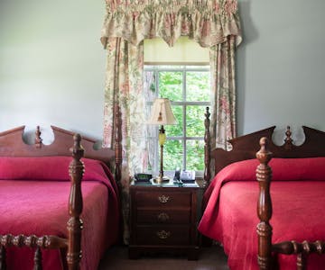 With two antique double beds and federal blue walls, the Rudolph Suite welcomes its guests and can accommodate a family of four. Country quilts, custom window treatments and cherry armoire and writing desk are just the touches that will make you feel right at home.