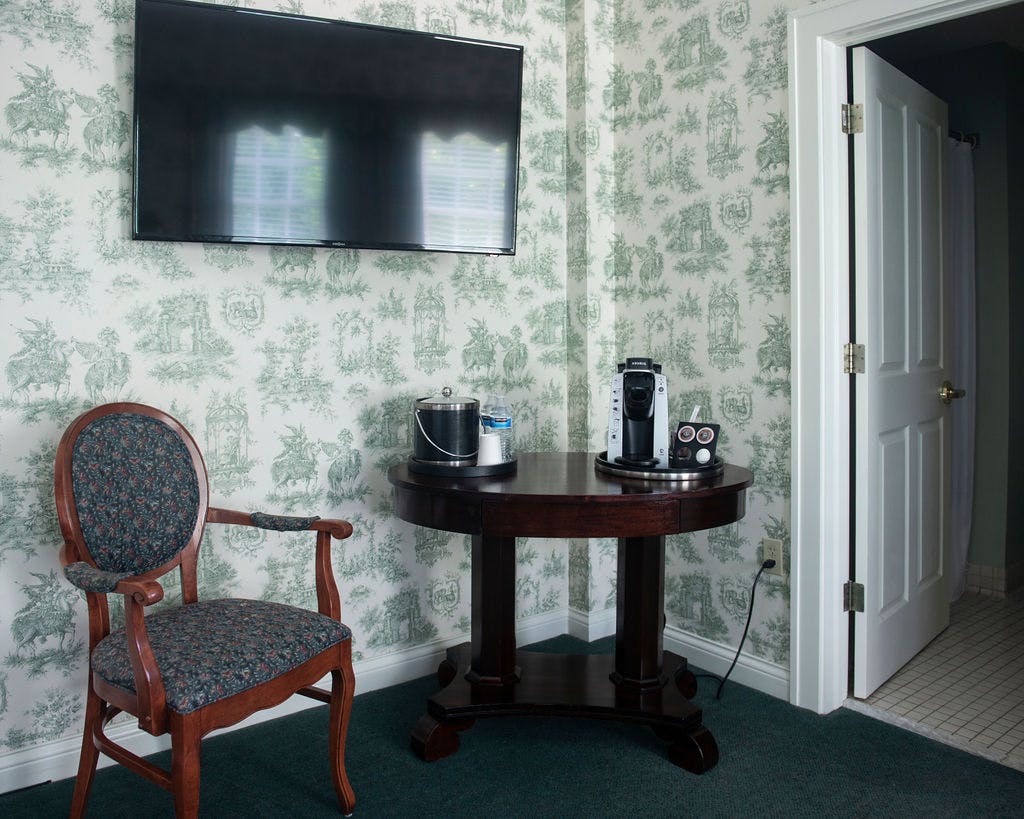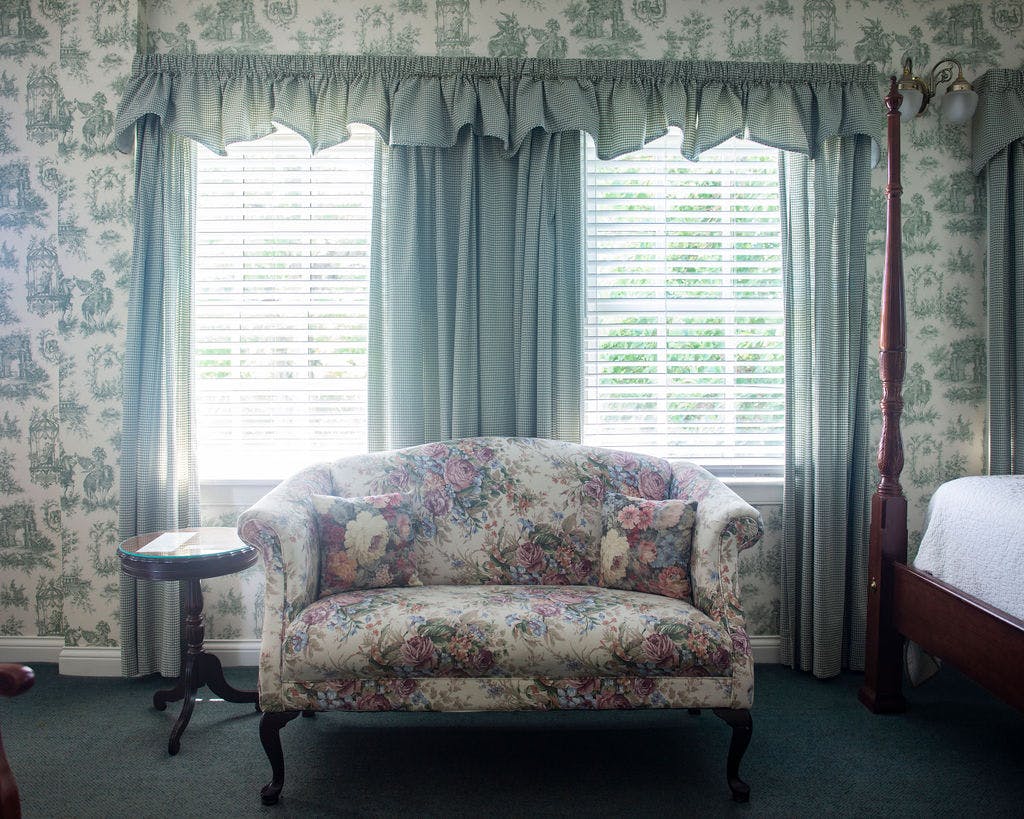 The suite is located on the second floor of the original Inn. As one of our larger rooms, it is an excellent space for families.