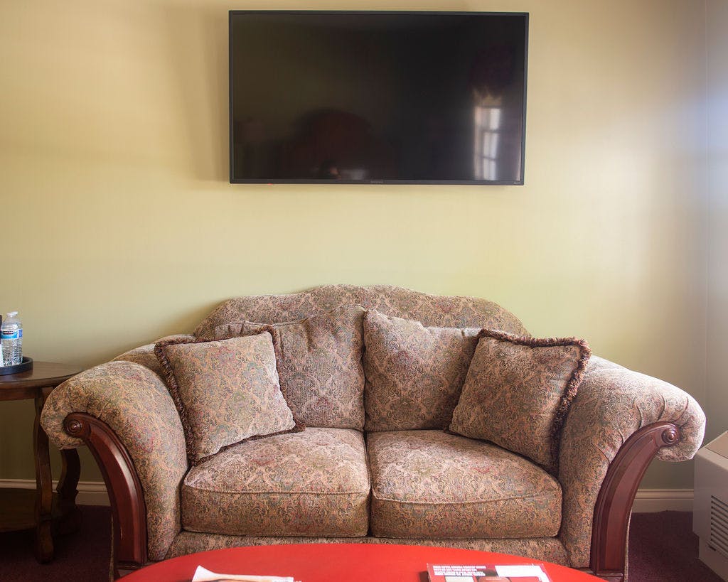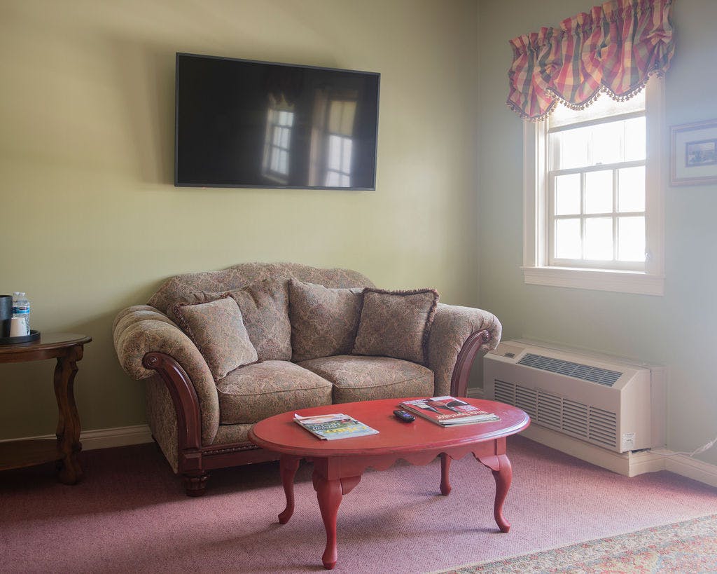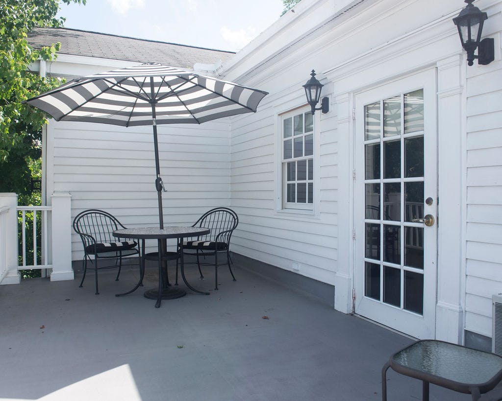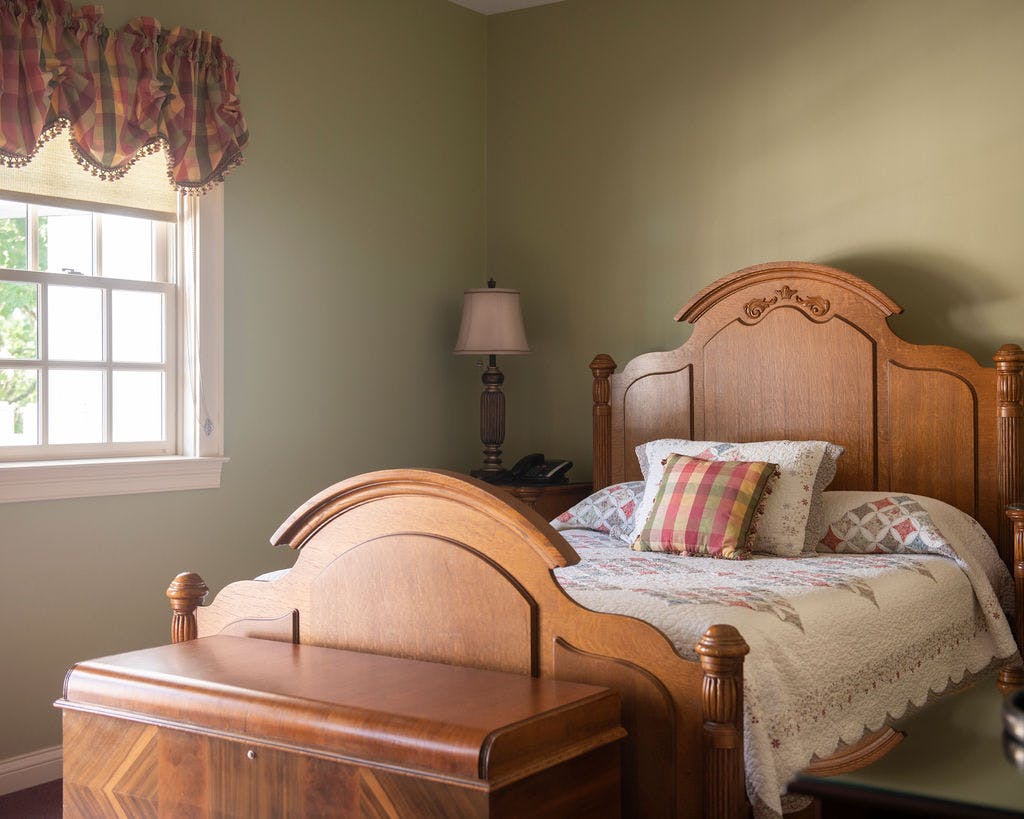 Romance is in the air and the Garrett Suite invites its guests to enjoy all that it offers. Wake to coffee and sunshine or settle in under the stars at night on the private front balcony of our lovely second floor suite. Or perhaps you may want to unwind in over-sized whirlpool tub? The antique oak queen-size bed, plush loveseat and mirrored armoire are elegant furnishings that set the tone for a romantic get-away for anyone who desires the Inn's finest.